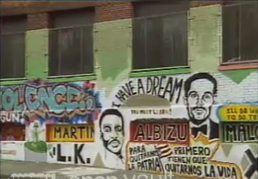 11/27/1990: Jamaica Plain's X-Men created a mural in Egleston Square with political slogans and memorials to dead members, joining in with community members to gather for the wake of Hector Morales.